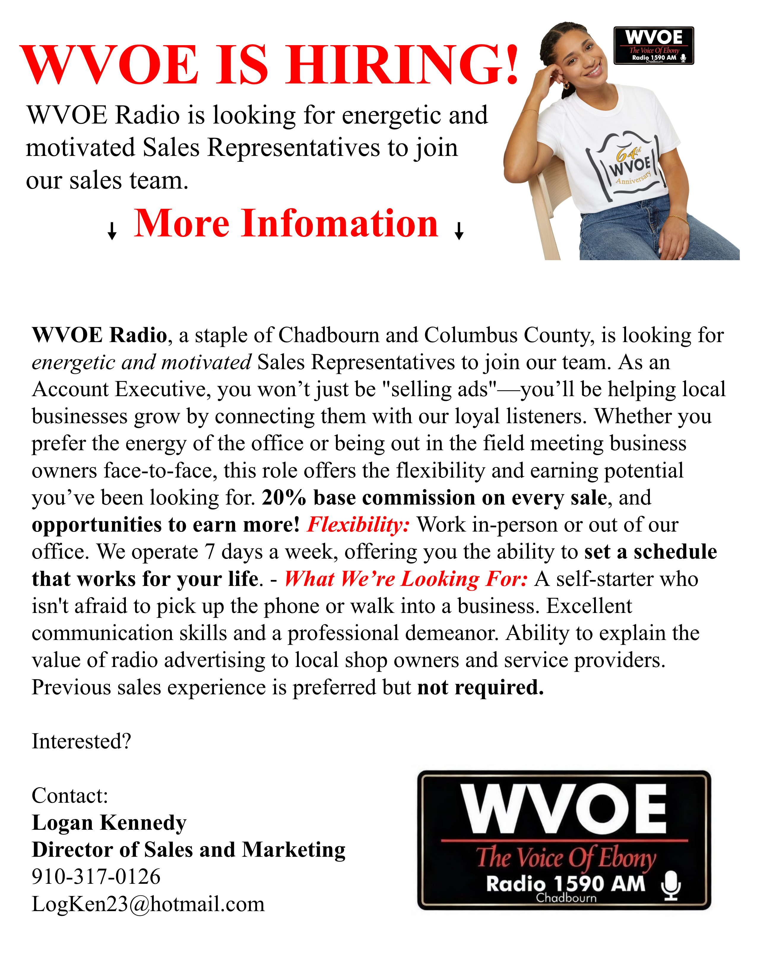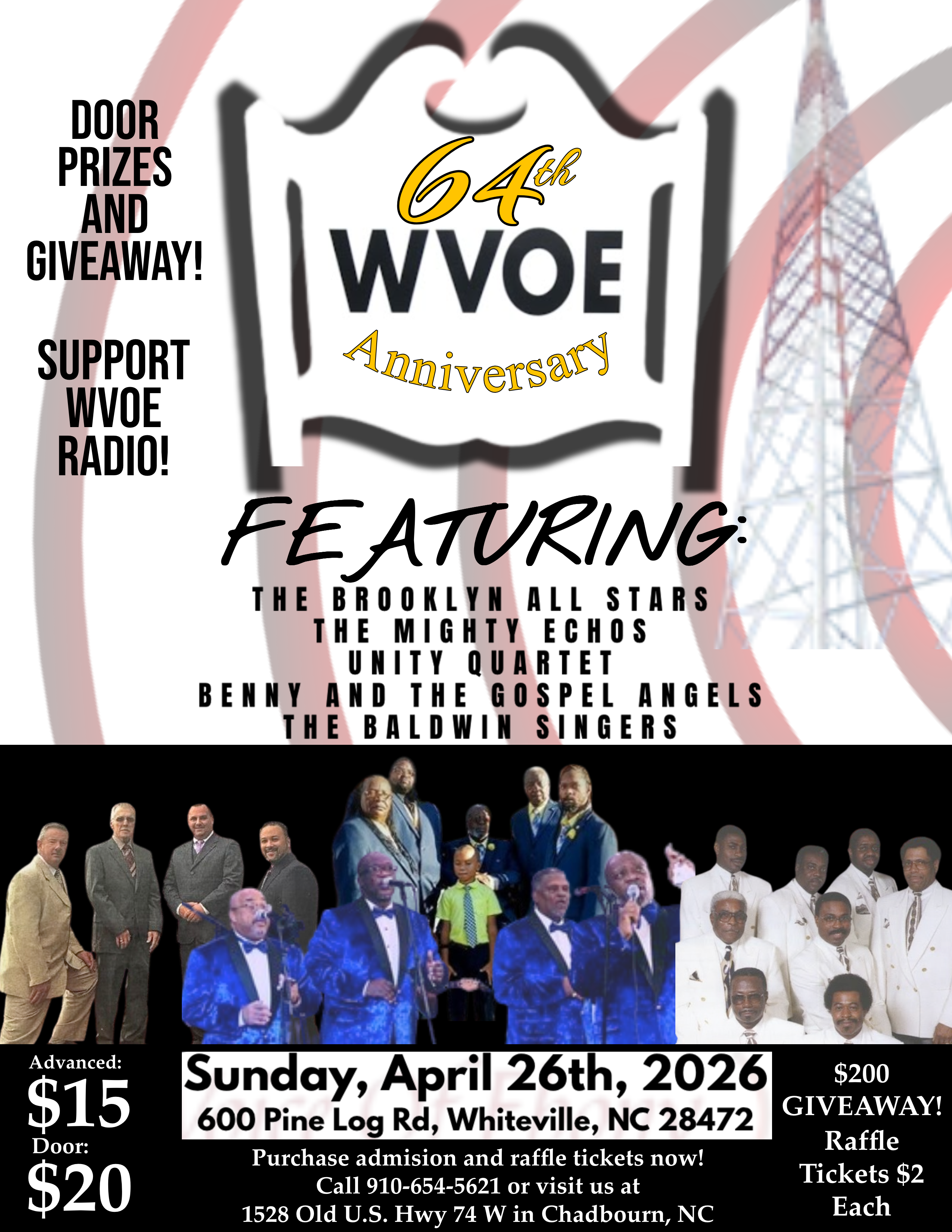 Like us on Facebook 910-654-5621 WVOE1590Radio@yahoo.com Columbus Daily on WVOE Radio Segment Latest Obituaries Like us on Facebook The WVOE Gallery Photos can be submitted to the gallery by emailing them to Logan Kennedy at LogKen23@hotmail.com